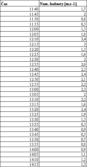 5.2.1. Postup a výsledky merania rýchlosti vetra